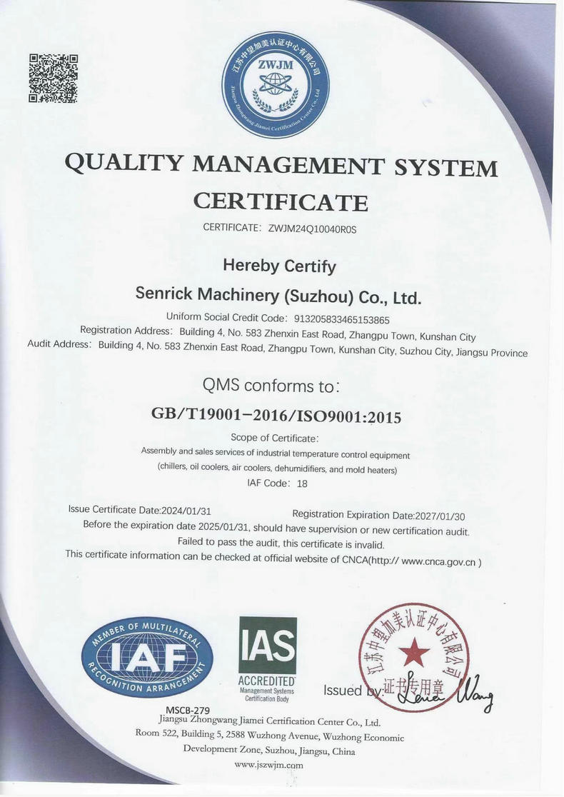 森瑞克機(jī)械(蘇州)有限公司(簡稱:SENRICK)是一家中外合作性企業(yè),引進(jìn)技術(shù),專注于工業(yè)制冷設(shè)備,工業(yè)溫控設(shè)備,非標(biāo)制冷設(shè)備,集激光,化工,真空設(shè)備輔機(jī)等集研發(fā)、生產(chǎn)、銷售、服務(wù)于一體的的現(xiàn)代化科技企業(yè)。公司擁有完善的制造設(shè)備,先進(jìn)的檢測系統(tǒng),獨(dú)立的加工、生產(chǎn)工藝,一支開拓創(chuàng)新專業(yè)有素的技術(shù)人才團(tuán)隊(duì),以及全面的質(zhì)量控制體系,為產(chǎn)品質(zhì)量的不斷優(yōu)化提供了強(qiáng)大的保障,以確保滿足不同市場的各種需求。經(jīng)過多年的努力企業(yè)相繼研發(fā)生產(chǎn)出了工業(yè)冷水機(jī),工業(yè)冷風(fēng)機(jī),工業(yè)冷油機(jī),工業(yè)機(jī),低溫冷水機(jī),低溫冷風(fēng)機(jī),低溫冷油機(jī),螺桿式冷水機(jī)...